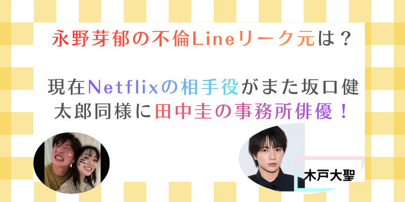 永野芽郁の不倫Lineリーク元は?現在Netflixの相手役がまた坂口健太郎同様に田中圭の事務所俳優!